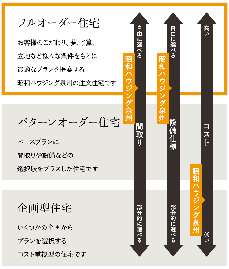 昭和ハウジング泉州はフルオーダーの設計自由度を、企画型住宅の価格で実現しました。