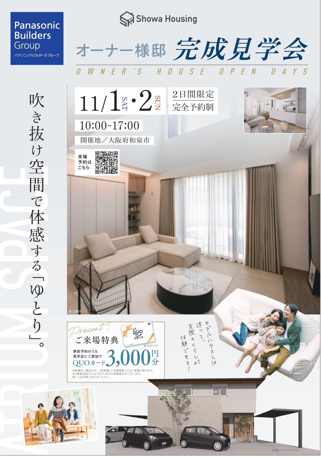 オーナー様邸完成見学会11月23日(土)・24日(日) 岸和田市岸城町