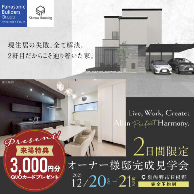 12月20日(土)・21日(日) に 泉佐野市日根野にて新築完成見学会を開催致します