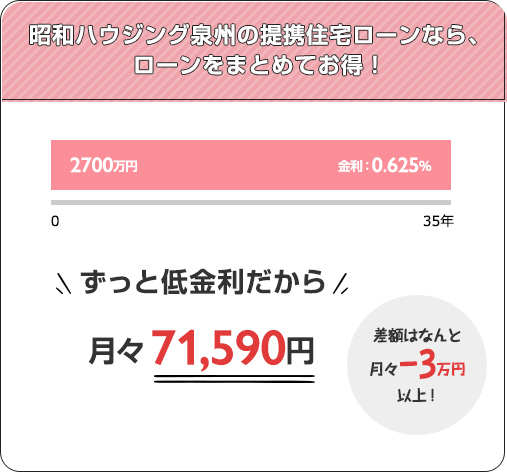 金利が安く、借入期間も長いため、月々の支払い負担が軽くなります。