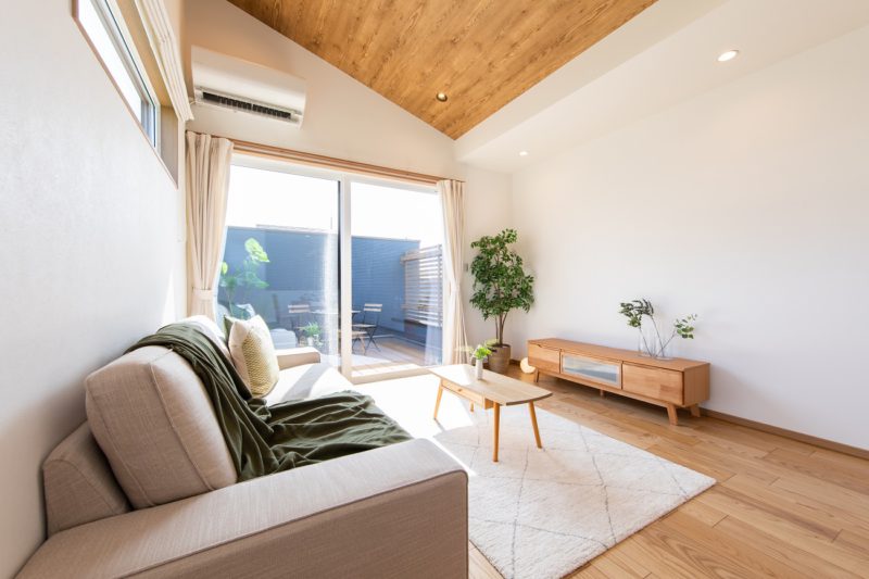 勾配天井を効果的に設計。最高天井高は3m以上で伸びやかな空間に