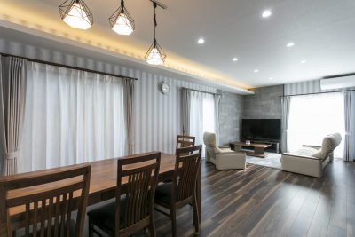 ダイニングはモダンなペンダントライトを主役に
