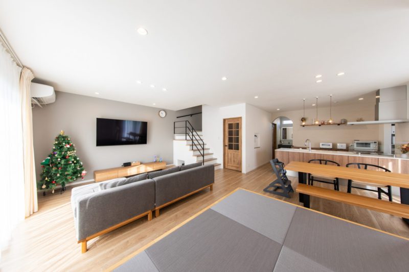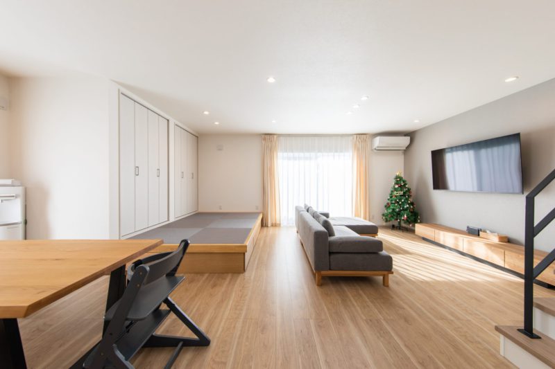 テレビを壁付けにしスッキリをした広さのLDKはなんと25.9帖!!お子様が走り回れる広さを叶えれられました!
