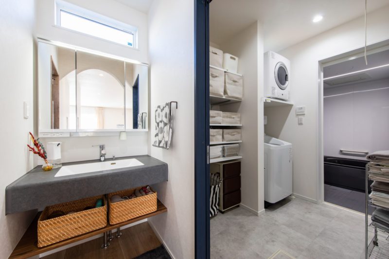 奥へ進むと洗面室や玄関につながる家事ラク動線にオーダーされました