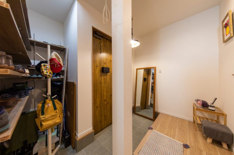 玄関のスペースを利用して5人家族の荷物をしっかり収納できる可動式棚の土間収納をご注文