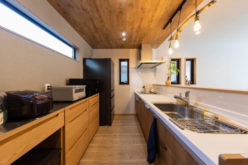 ご主人が見つけられた流木が調和されたキッチンやヒミツのゲーム基地があるご家族の思いが形になったオーダー住宅。