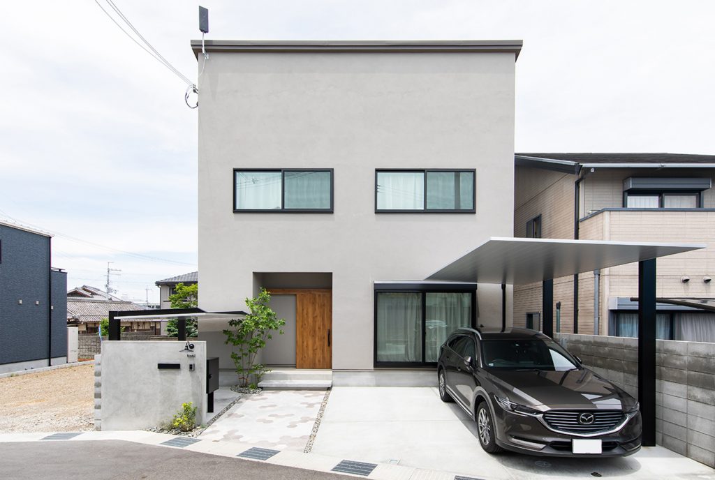 素材にこだわったモルタルと木目の異素材ミックスのバランスが絶妙なお家
