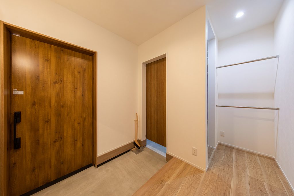 大きな土間収納へコートをかけたらそのままホールへ抜ける間取りに