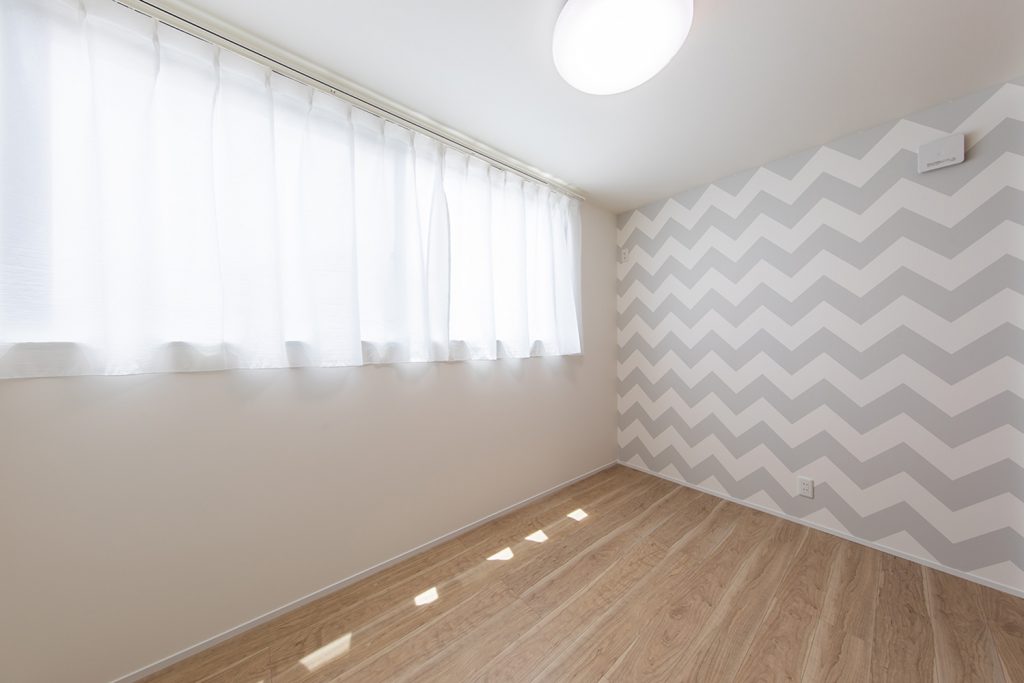 木目を上手く調合したアクセントウォールがお部屋に立体感と明るさをプラスしている